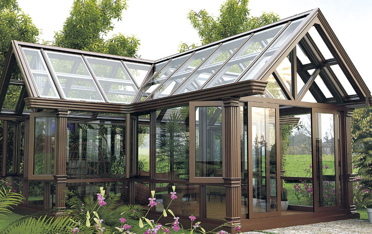 118阳光房、100阳光房和138阳光房均使用挂钩安装设计,这种阳光房加工方便,全部为90°的切角,挂钩式安装,安装方便,可做斜坡顶和人字顶或八角顶,可以根据客户地形要求设计适合造型。